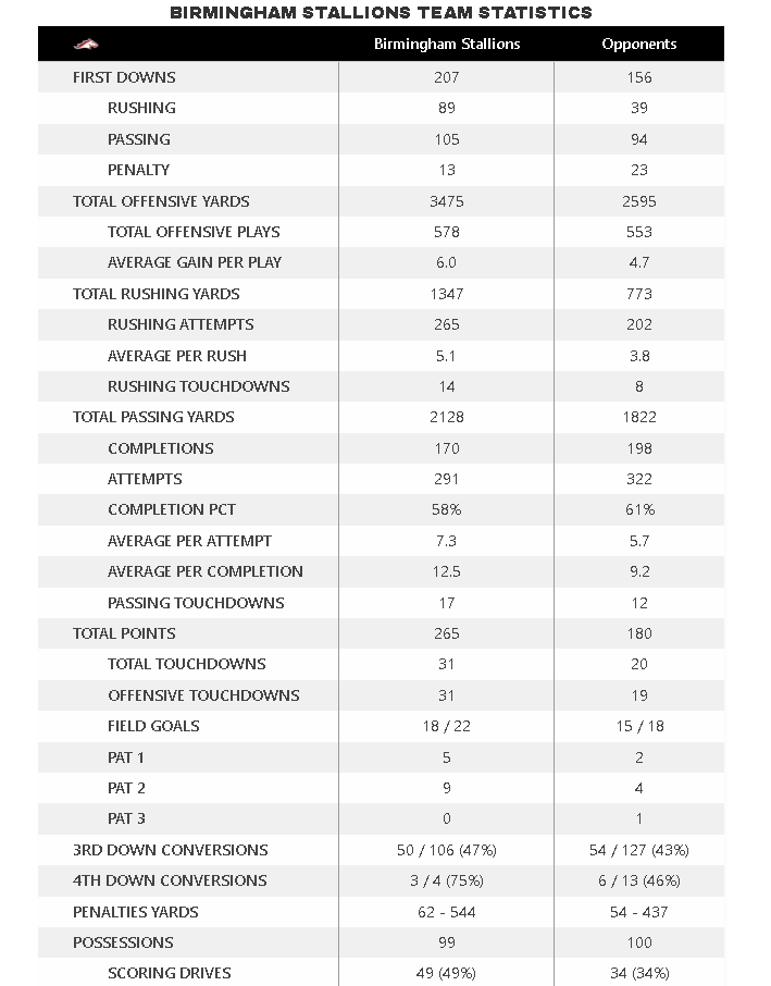 The success of the Stallions in 2024 showed the importance of building teams on all aspects. Their offense was fearsome, leading the league in rushing yards and placing second in passing yards, while the defense ranked second in yards allowed. That balance-not relying too heavily on any one facet of the game-is what has made them so difficult to game plan for.